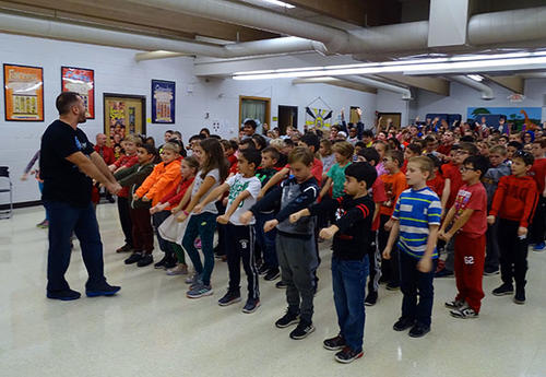 In honor of National Bullying Prevention Month, Martial Arts instructor Adam Grisko spoke to the Bannes students at a school assembly on October 23rd.