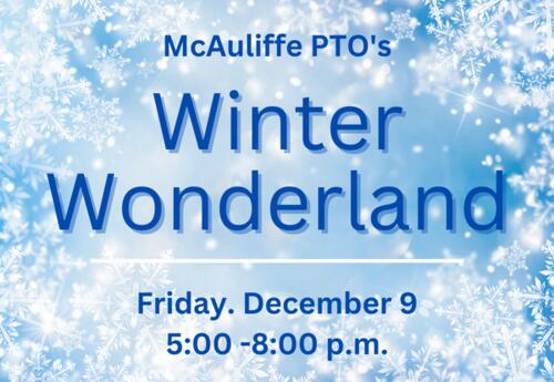 The McAuliffe PTO will host a Winter Wonderland on Friday, December 9, from 5 - 8 p.m.
