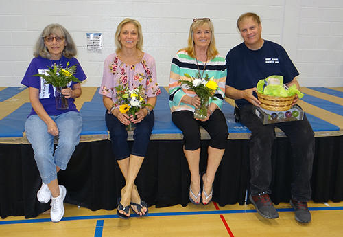 McAuliffe retirees Kathy Murphy, Ed Pierce, Lisa Watson and Pam Truesdale were honored at an end of year assembly on Friday, May 25th.